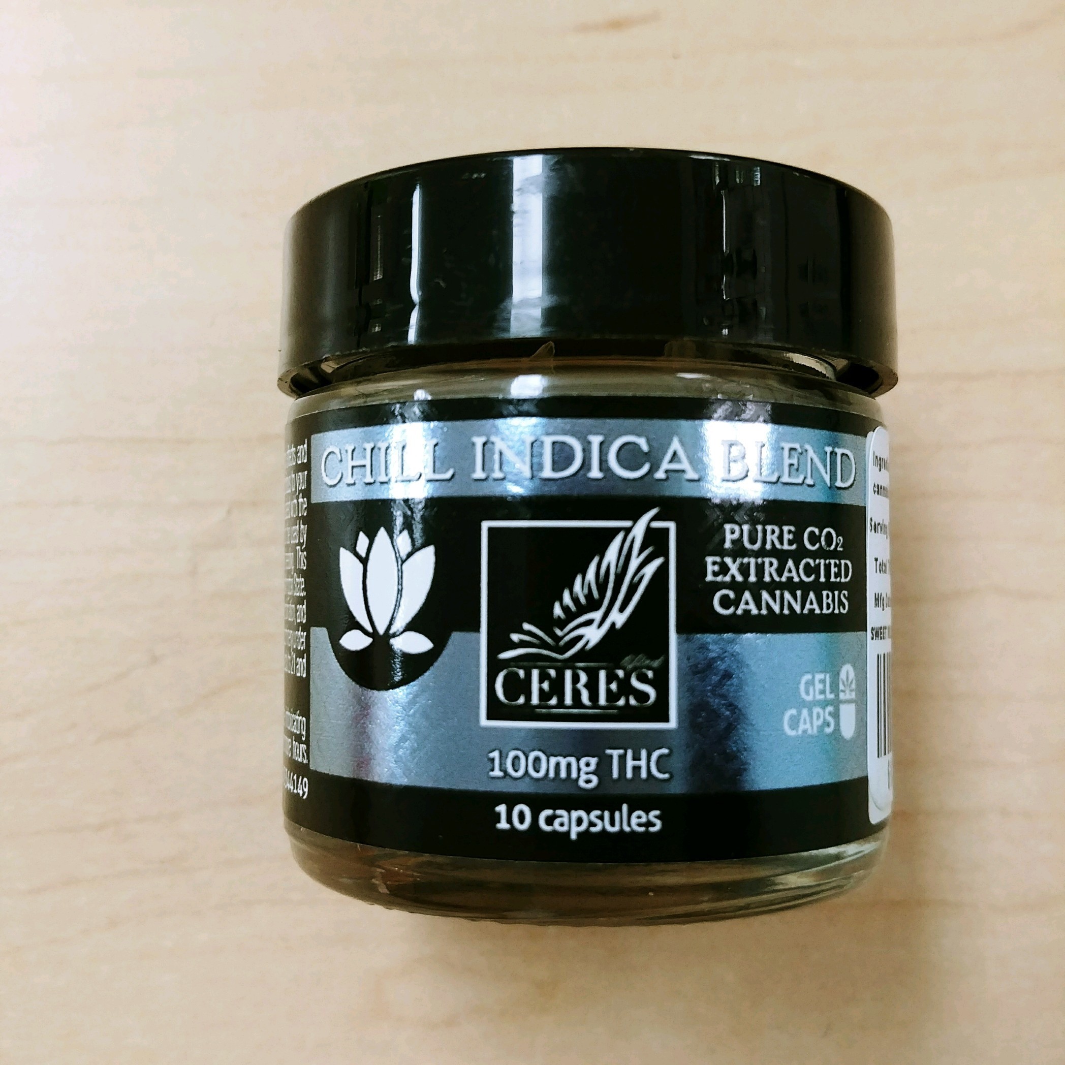 Buy Indica Chill Capsules 10 Pack Variety:Indica Producer:Ceres Garden Description:Deep relaxation in every bottle, our unique indica blend contains 100mg