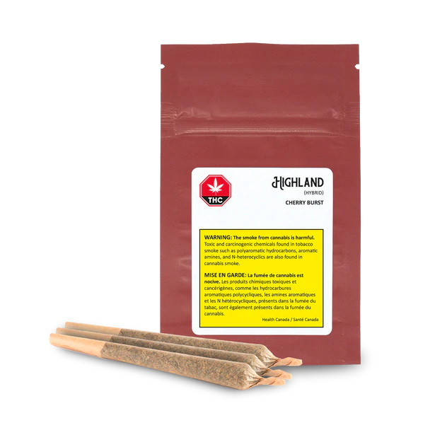 Buy Highland Grow – Pre-Rolled Cherry Burst Online Europe – Cherry Burst’s aroma possesses a delightfully sweet fragrance with hints of skunky notes. Cherry Burst presents an easy smoke with flavors of berry and wood.