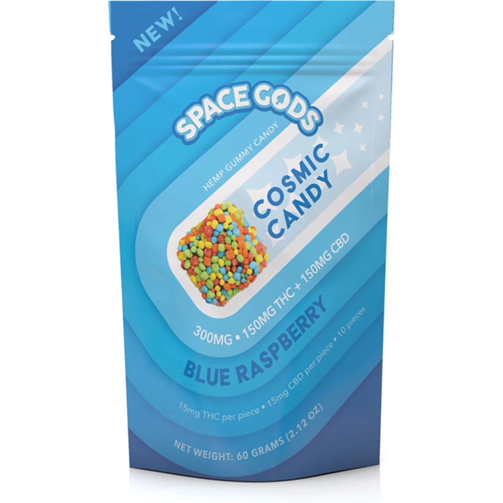 Space Gods THC + CBD Cosmic Candy 300mg – Perfect for on-the-go use. Each piece contains 15mg THC + 15mg CBD. Each package contains 10 pieces, 300mg total