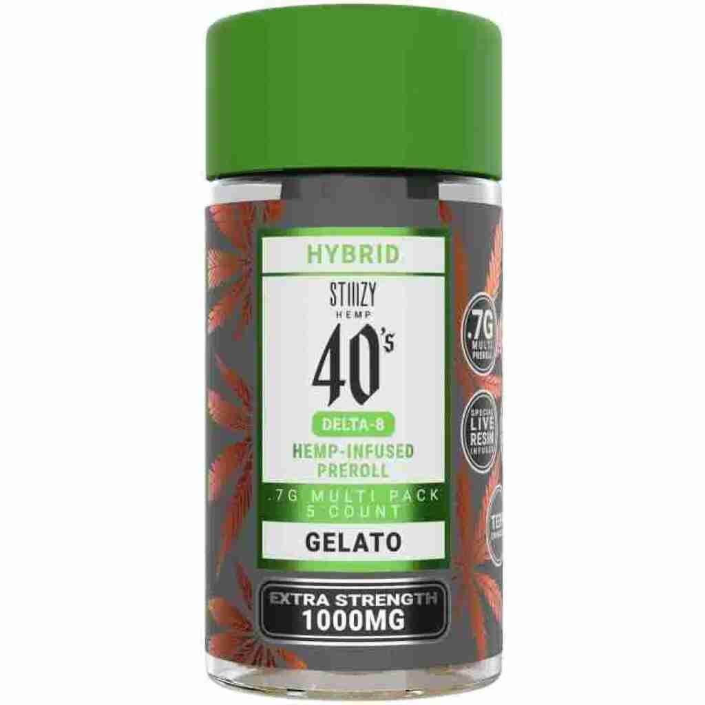 STIIIZY Hemp Gelato Delta-8 Pre-Rolls 3.5g – STIIIZY Hemp 40’s infused Pre-Rolls are setting the standard with four blend options, high potency, infused joints coated evenly with kief. Using our proprietary live resin infusion methods.
